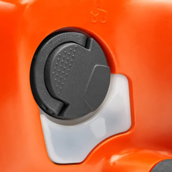 - Пила оснащена автоматичним масляним насосом і баком об'ємом 0.2 л, що забезпечує стабільне змащування ланцюга під час роботи. Відкидна кришка масляного бака зручно відкривається навіть у рукавичках і завжди залишається прикріпленою до корпусу, унеможливлюючи ризик її втрати. Це спрощує обслуговування і робить процес заправки швидким і акуратним.