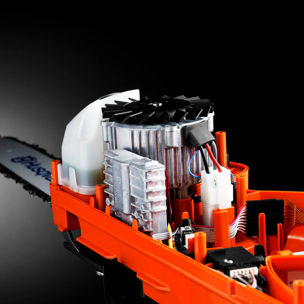 - Інструмент оснащений ефективним безщітковим двигуном з потужністю, яку можна порівняти з бензиновими моделями на 1150 Вт, що забезпечує стабільну швидкість ланцюга і впевнену роботу навіть за підвищеного навантаження. Відсутність щіткового вузла зменшує втрати енергії та підвищує загальний ККД, позитивно впливаючи на термін служби пристрою. Такий двигун менше нагрівається, не потребує обслуговування, пов'язаного із заміною щіток, і розвиває високий крутний момент, що дає змогу легко справлятися з деревиною різної щільності. Це робить експлуатацію пили більш простою, надійною та економічно вигідною в довгостроковій перспективі.