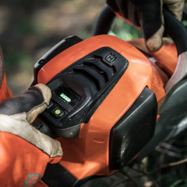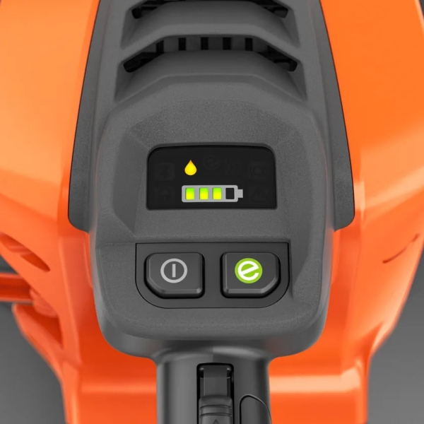 - При інтеграції з Husqvarna Fleet Services доступна інформація про статистику використання, історію обслуговування та останнє зафіксоване місцезнаходження обладнання. Індикатор рівня мастила на панелі управління своєчасно повідомляє про необхідність доливання, що допомагає уникнути передчасного зносу гарнітури.