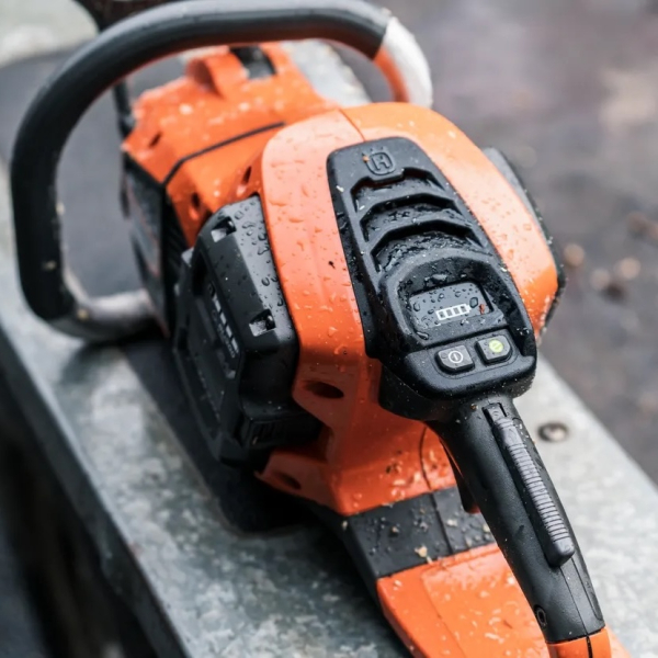- Конструкція пили продумана для роботи в будь-яких погодних умовах. Ступінь захисту IPX4 підтверджує стійкість до впливу дощу, що дає змогу використовувати інструмент цілий рік. Відсутність паливної системи, мінімальна кількість вузлів, що обслуговуються, та електронне управління приводом знижують витрати на сервіс і зменшують час простоїв.