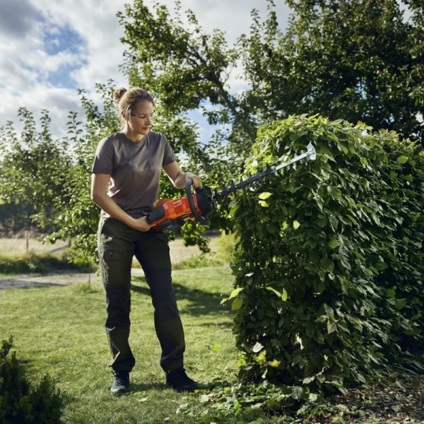 Акумуляторний кущоріз Husqvarna 322iHD60 - це надійний інструмент для догляду за живоплотом, що поєднує високу продуктивність і точний, чистий різ. Оснащений сучасним безщітковим двигуном, він забезпечує підвищену ефективність, збільшений ресурс роботи та мінімальні вимоги до обслуговування. При довжині ножа 60 см ножиці ефективно обрізають гілки діаметром до 30 мм.