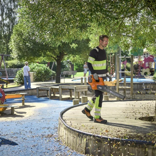 Husqvarna 530iB - це професійний акумуляторний повітродув 36 В нового покоління, розроблений для інтенсивної щоденної експлуатації. Він поєднує високу продуктивність (999 м³/год), інтелектуальну електроніку та продуману ергономіку, забезпечуючи стабільний результат навіть за тривалої роботи. Потужний потік повітря з максимальною швидкістю 67.8 м/с та силою 18 N ефективно видаляє листя, пил та дрібне сміття, а економічний безщітковий двигун гарантує знижене енергоспоживання та збільшений час автономної роботи.