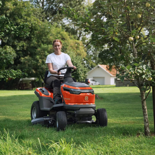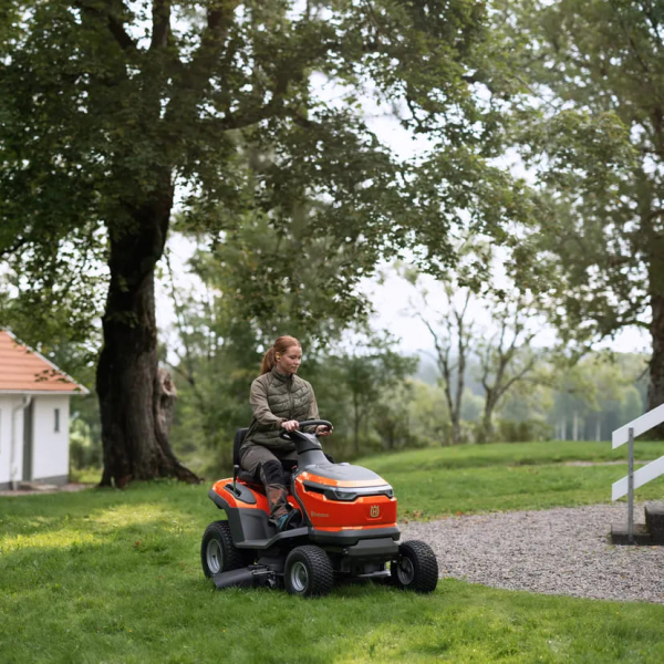 Husqvarna TS 100i – садовий трактор з акумуляторним живленням для стрижки великих газонів. Гідростатична трансмісія забезпечує плавне регулювання швидкості до 10 км/год вперед і до 6 км/год назад. Ширина захоплення складає 95 см, висоту скошування можна змінювати в межах 25-100 мм.