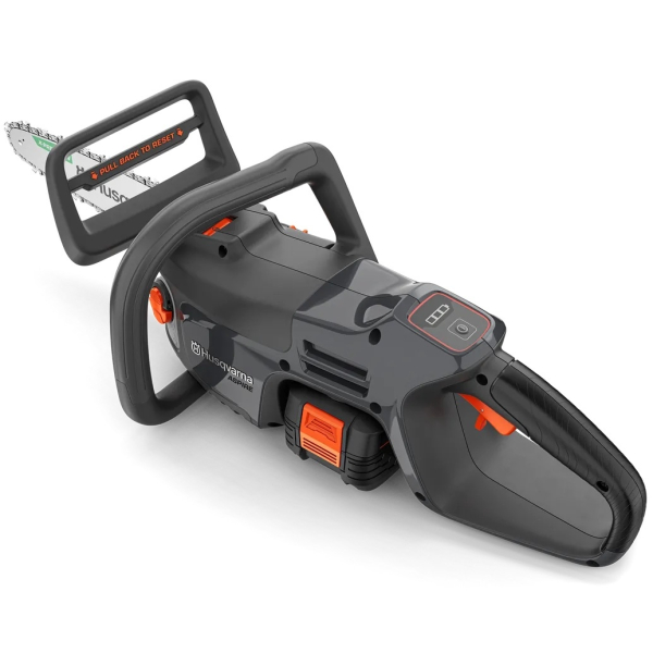 - Інтелектуальний цифровий інтерфейс управління робить експлуатацію максимально простою і наочною. Увімкнення здійснюється однією кнопкою, а світлова індикація дає змогу контролювати стан акумулятора, активність гальма ланцюга та інші робочі параметри. Для підвищення безпеки передбачена функція автоматичного вимкнення через 180 секунд бездіяльності, що зменшує ризик випадкового запуску і допомагає економити заряд батареї.