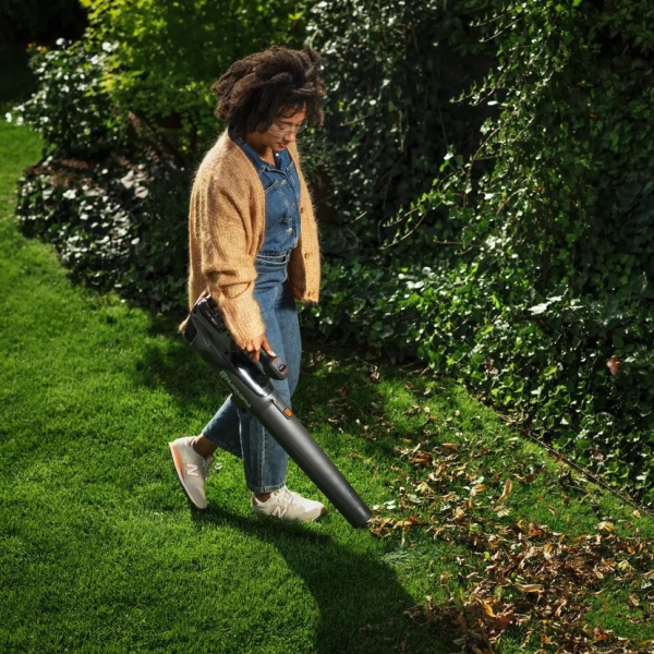 - Однією з ключових переваг моделі є триступеневе регулювання швидкості. Користувач може точно налаштувати силу повітряного потоку залежно від ситуації: делікатне очищення клумб і декоративних зон, акуратна робота біля садових меблів або потужне продування доріжок, терас і газонів. Така гнучкість робить інструмент універсальним рішенням для щоденного догляду за ділянкою в будь-яку пору року.