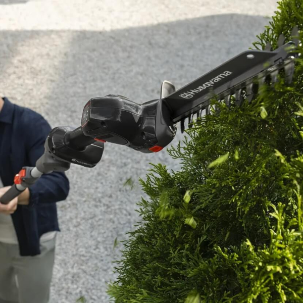 - Додаткова телескопічна штанга розширює радіус роботи кущоріза, даючи змогу виконувати обрізання на висоті до 3 метрів і забезпечуючи більш зручне, ергономічне положення користувача під час роботи.