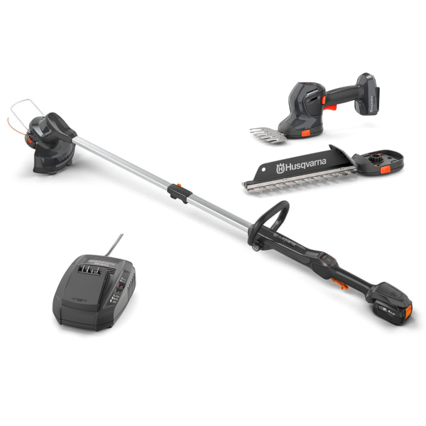 Набір садової техніки Husqvarna Aspire містить акумуляторний тример Aspire T28-P4A для акуратного оброблення країв газону і легкий кущоріз Aspire S20-P4A для точного підстригання огорож і кущів. Обидва інструменти працюють від акумуляторів 18В, що забезпечує високу мобільність, відсутність дротів і можливість використовувати один акумулятор для різних завдань. Ергономічні рукояті, автоматична подача волосіні на тримері та просте обслуговування роблять цей комплект чудовим вибором для догляду за ділянкою — від газону до декоративних чагарників — без зайвих зусиль і шуму. У комплекті поставляється акумулятор P4A 18-B72 ємністю 4 Ah і зарядний пристрій P4A 18-C70.