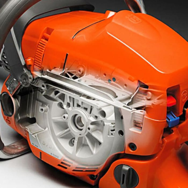 - Інерційне гальмо ланцюга, яке миттєво зупиняє ланцюг у разі віддачі або небезпечної ситуації, підвищуючи рівень безпеки оператора.