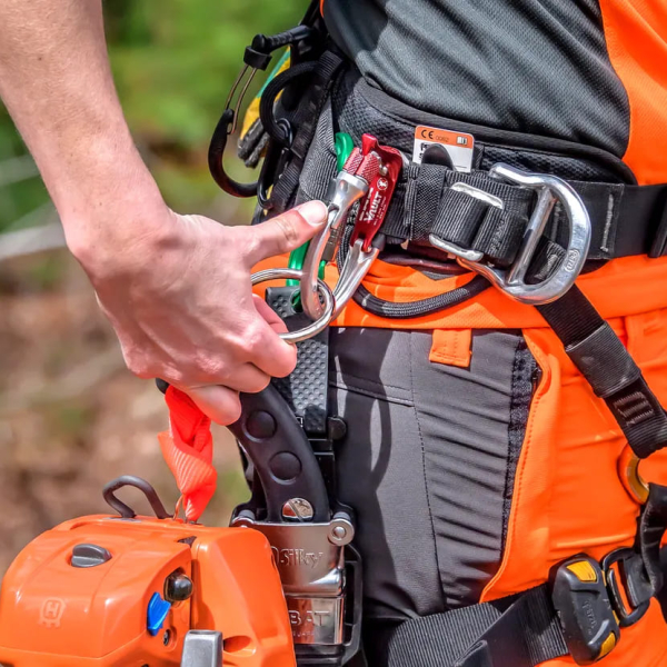 - Конструкція передбачає можливість кріплення страхувального шнура або карабіна, що особливо важливо для професійних арбористів.