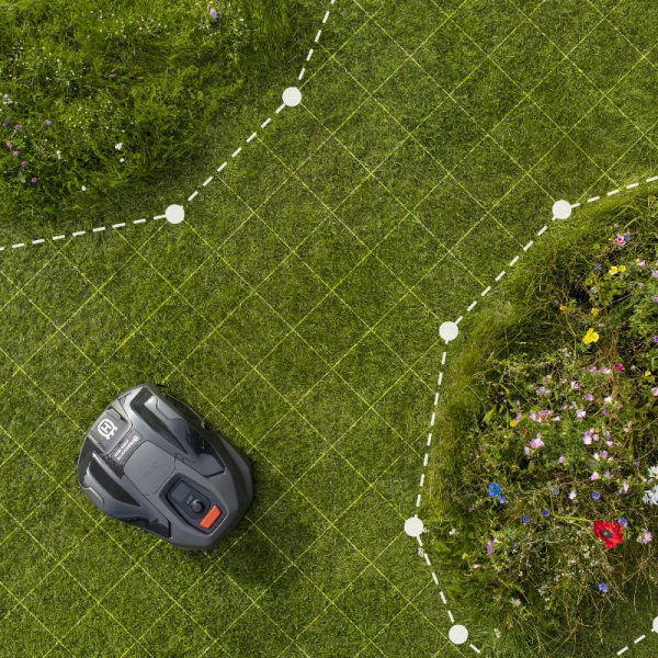 - У вузьких проходах косарка автоматично переходить з хаотичної схеми руху на систематичну, зменшуючи кількість поворотів і запобігаючи утворенню колій. Вона розпізнає складні ділянки та самостійно коригує траєкторію руху.
