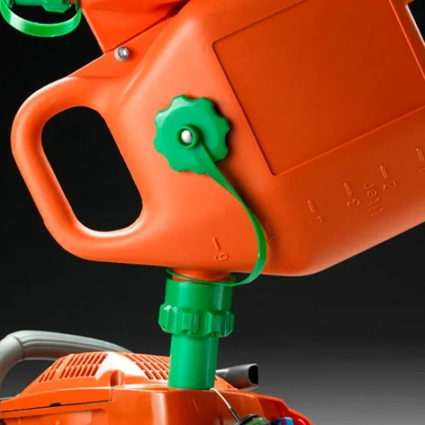 - Її конструкція розроблена таким чином, щоб максимально спростити процес заправки та уникнути розливання палива. Спеціальний носик забезпечує акуратну подачу рідини прямо в бак, а вбудований механізм автоматичної зупинки потоку спрацьовує при заповненні, запобігаючи переливу та утворенню бризок.