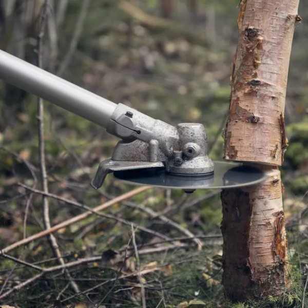 - У комплектацію входить диск Scarlett 225-24 діаметром 22.5 см. Комбінований захисний кожух забезпечує універсальність застосування, дозволяючи використовувати як диск, так і ніж або тримерну головку в разі доукомплектування ними пилки. Магнітний фіксатор в редукторі полегшує швидку заміну ріжучого обладнання.