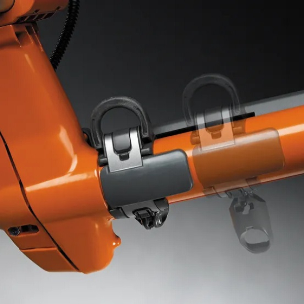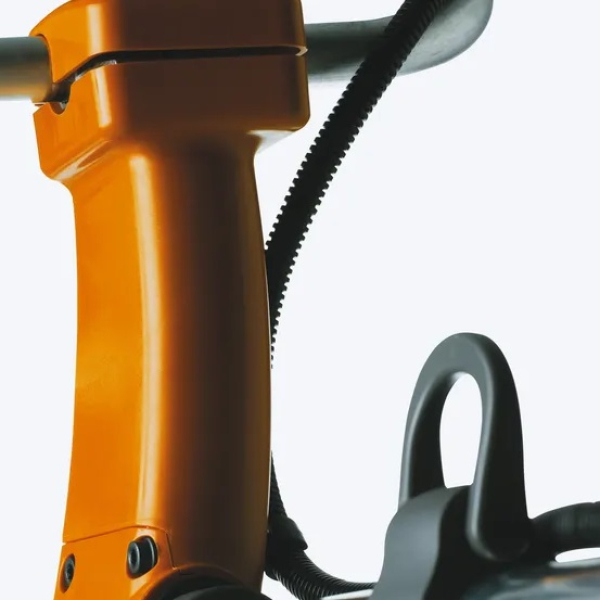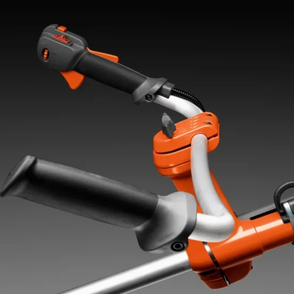 - Особлива увага приділена комфорту оператора. Велосипедна рукоятка з похилою стійкою забезпечує природне положення рук і надійний хват. Висока магнієва стійка керма сприяє свободі рухів, особливо при роботі на схилах. Антивібраційна система LowVib ефективно знижує навантаження на кисті і передпліччя при тривалій експлуатації.