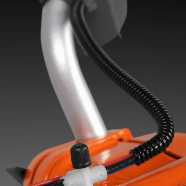 - Однією з ключових особливостей моделі є система підігріву рукояток з термостатичним управлінням, яка забезпечує комфортну роботу в холодну і вологу погоду. Підігрів допомагає зберегти чутливість рук і стабільний контроль над інструментом навіть при низьких температурах. Додатково передбачений легкодоступний масляний ніпель для нанесення протизамерзаючого мастила на трос дроселя, що запобігає його обмерзанню при експлуатації в екстремально холодних умовах.