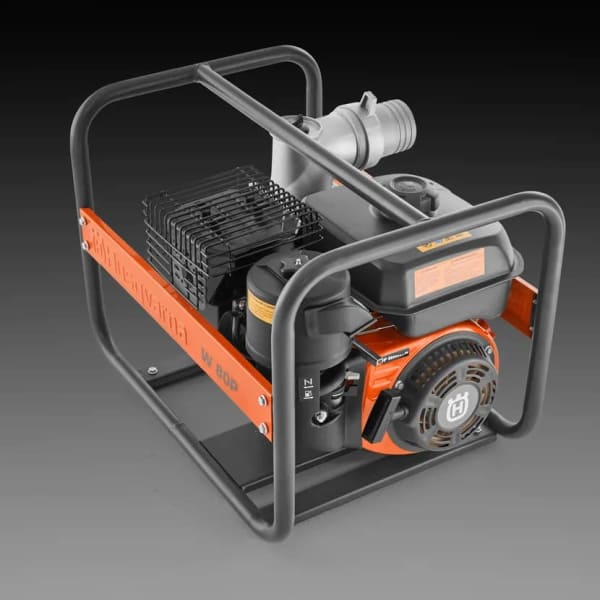 Husqvarna W80P – насос середнього класу для перекачування великих об’ємів чистої або слабозабрудненої води. В моделі встановлений чотрирьохтактний бензомотор Husqvarna 168FВ 3.7 кВт (5.7 к.с.) об’ємом 196 cm³ з робочими обертами 3600 об/хв. Продуктивність помпи складає 54 000 л/год (833 л/хв). Глибина всмоктування досягає 7 м, а висота подачі - 28 м. Вихідний і вхідний патрубки мають діаметр 80 мм.