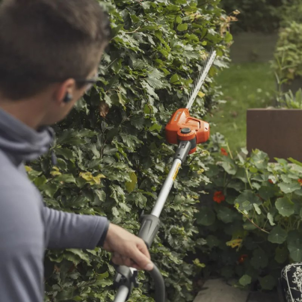 - Модель дозволяє перетворити базовий комбі-тример (наприклад, Husqvarna 110iL FLXi KІТ) на повноцінний інструмент для догляду за живоплотом, підрізування кущів та формування рослин у саду.