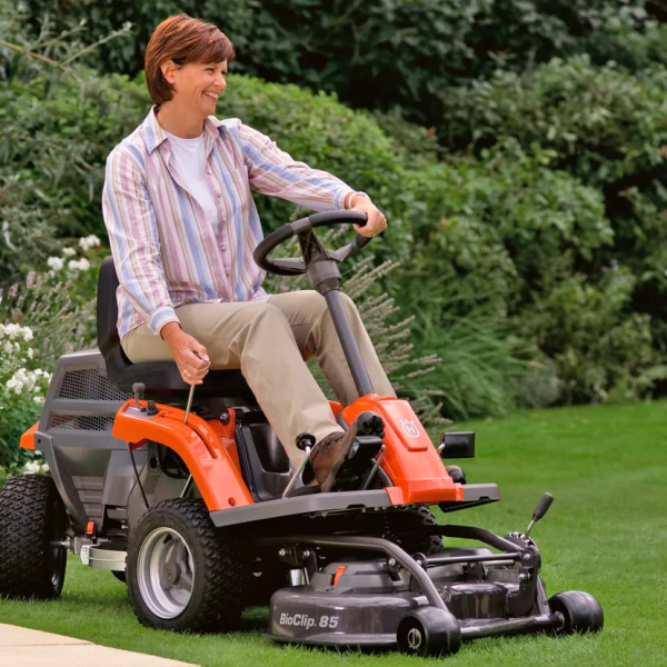 - Husqvarna R 112C – маневрений і надійний бензиновий райдер із переднім розташуванням ріжучої деки для ефективного догляду за газонами середнього і великого розміру від 1000 м².
