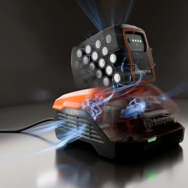 - Однією з ключових особливостей моделі є система активного охолодження ActiveCool. Вбудовані вентилятори забезпечують ефективне охолодження акумулятора під час заряджання і відразу після інтенсивного використання. Це допомагає швидше підготувати батарею до наступного робочого циклу, скорочує час простою обладнання і одночасно сприяє збільшенню терміну служби акумуляторів.