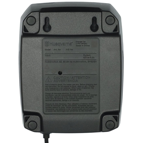 - Зарядний пристрій Husqvarna QC250 — це компактне і надійне рішення для зарядки акумуляторів Husqvarna напругою 36В з максимальним зарядним струмом 6А. Пристрій розроблений для ефективної та безпечної роботи з батареями системи Husqvarna BLi-X, яка використовується в широкому спектрі акумуляторних садових інструментів.